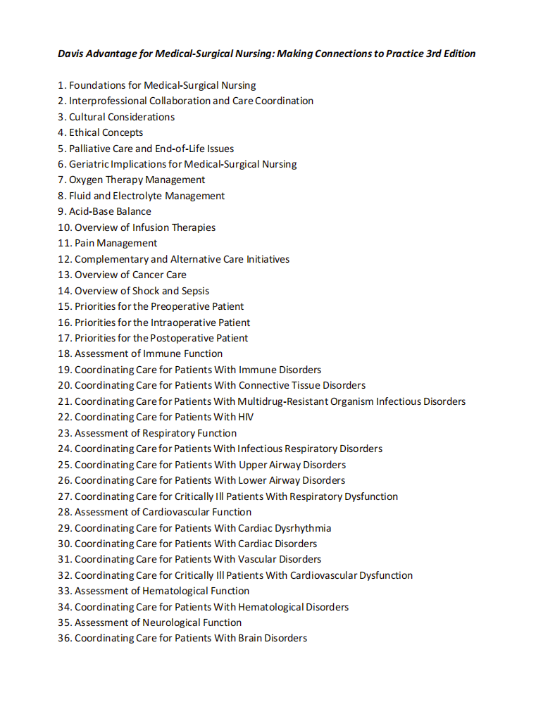 Test Bank Davis Advantage for Medical-Surgical Nursing: Making Connections to Practice 3rd Edition