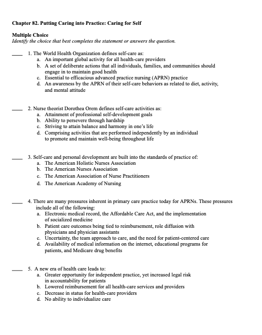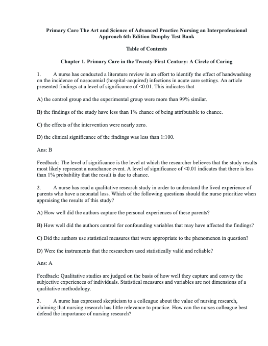 This Primary Care test bank provides a comprehensive collection of exam-focused questions designed to support advanced practice nursing students in applying primary care principles within an interprofessional healthcare framework.