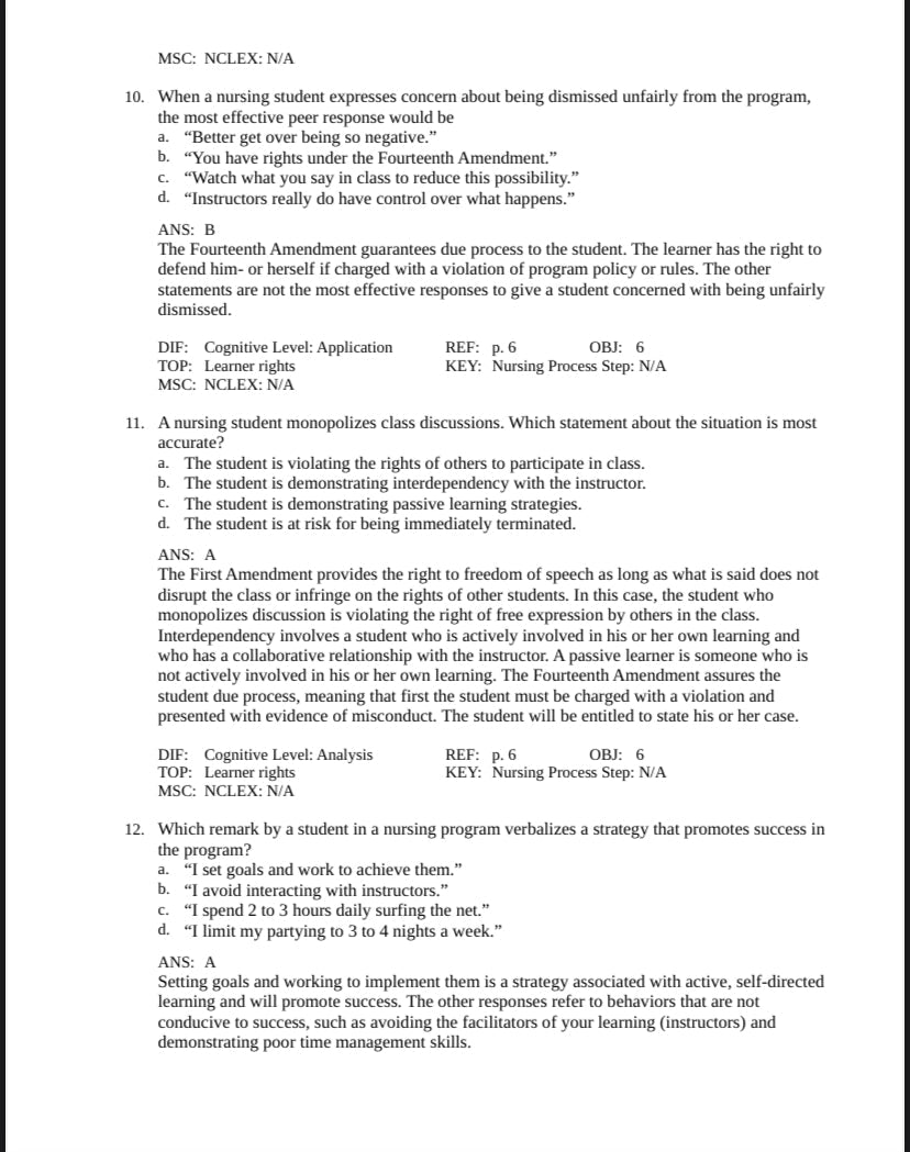 Detailed rationales explaining correct and incorrect answers