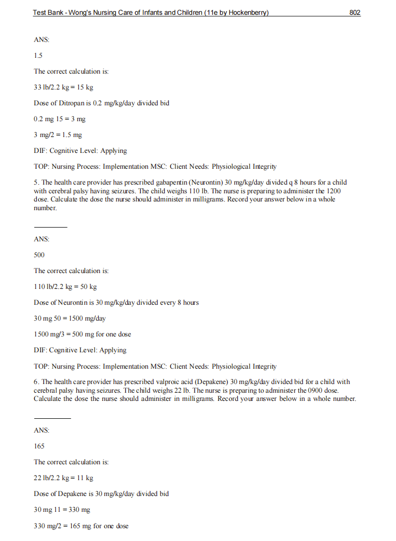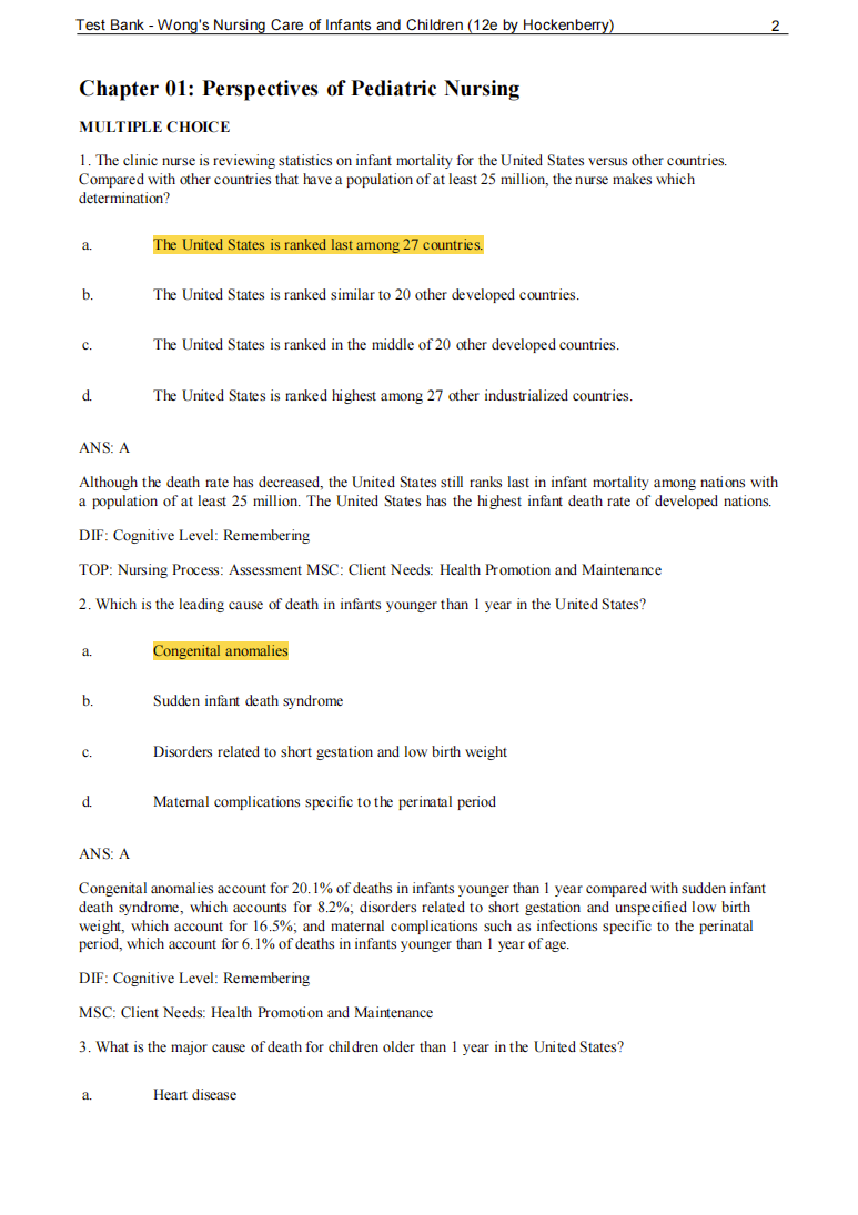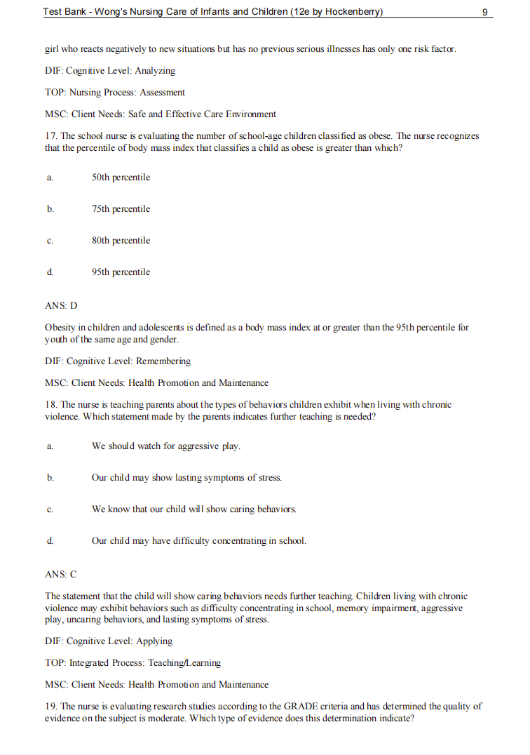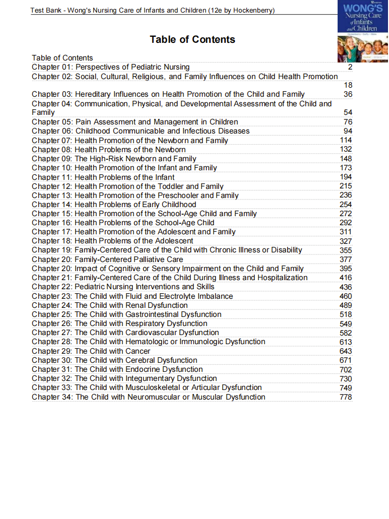 Test Bank Wong's Nursing Care of Infants and Children 12th Edition by Hockenberry