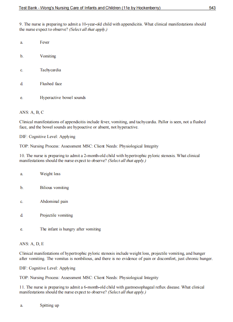This Pediatric Nursing test bank provides a comprehensive collection of exam-focused questions designed to help nursing students apply pediatric nursing concepts to the care of infants, children, and adolescents.